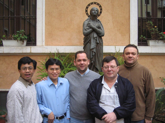 (from left) Ignasius Budino, Edison Tinambunan, Evaldo Gomes, Wilmar Santin (Prior), and Paulo Fernando New Prior's Council Elected for CISA The members of the community of Centro Internazionale Sant’ Alberto in Rome recently elected a new Council for the 2005-2006 academic year. Elected were Evaldo Xavier Gomes (Flum), Paulo Fernando de Moura (Pern), Ignasius Budiono (Indo), and Edison Tinambunan (Indo). Evaldo, Paulo, and Ignasius are graduate students at universities in Rome. Edison is the librarian of the Biblioteca Carmelitana and member of the Institutum Carmelitanum. The members of the Council gives the prior of the community advice and council on a variety of issues that a large community presents.