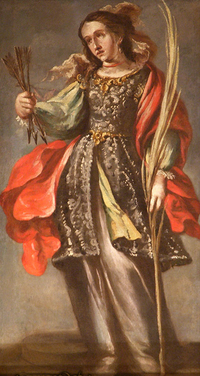 The sister of St. Acisclus, St. Victoria also suffered martyrdom, being shot with arrows, during the persecutions of Diocletian and is also a patron saint of Córdoba. There is some doubt about the historical veracity of Victoria's existence, but both martyrs have been honored in liturgy.