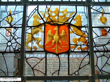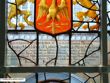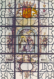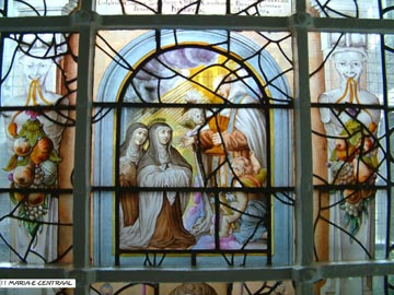 | Full view of the window dedicated to Maria Magdalena de' Pazzi (1566-1607), the Carmelite mystic from Florence, Italy. Most of her life was spent as a nun in the enclosed Carmelite monastery of Florence. |